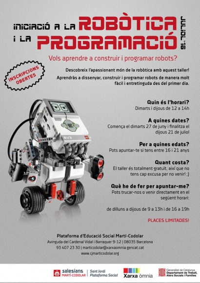 The course will take place every Tuesday and Thursday from 12 to 14 hours, between 27 June and 21 July. It is not necessary to have prior training, just have a desire to learn to design, build and program robots of different types.