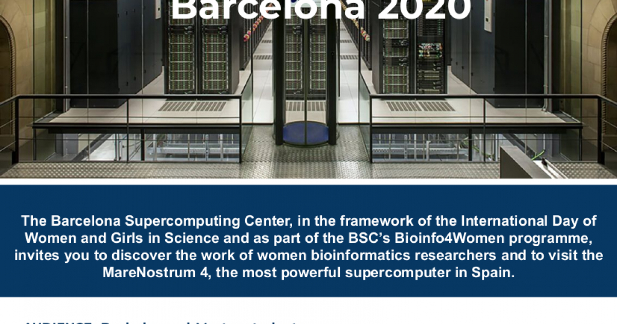 L'activitat es realitzarà l'11 de febrer de 15 a 19 h. al Barcelona Supercomputing Center (c/Jordi Girona, 29) on investigadores i enginyeres t'explicaran el seu treball en medicina personalitzada, anàlisi de genomes, processament de llenguatge natural i l'evolució de genomes.